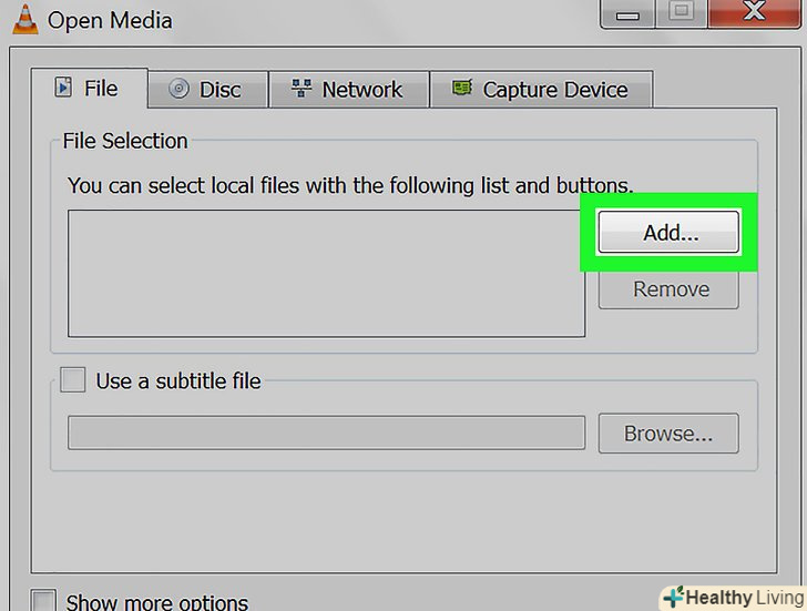 НатиснітьДодати.ви знайдете цю опцію праворуч на вкладці "Файл «у вікні»джерело".- На комп'ютері Mac натисніть "джерело".