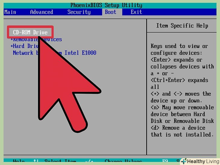 Відкрийте меню BOOT (завантаження) в BIOS.Налаштуйте завантаження комп'ютера з CD / DVD-приводу.