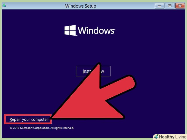 Натисніть "Repair your computer" (полагодити ваш комп'ютер).це можна зробити на головному вікні перед входом в установку Windows.