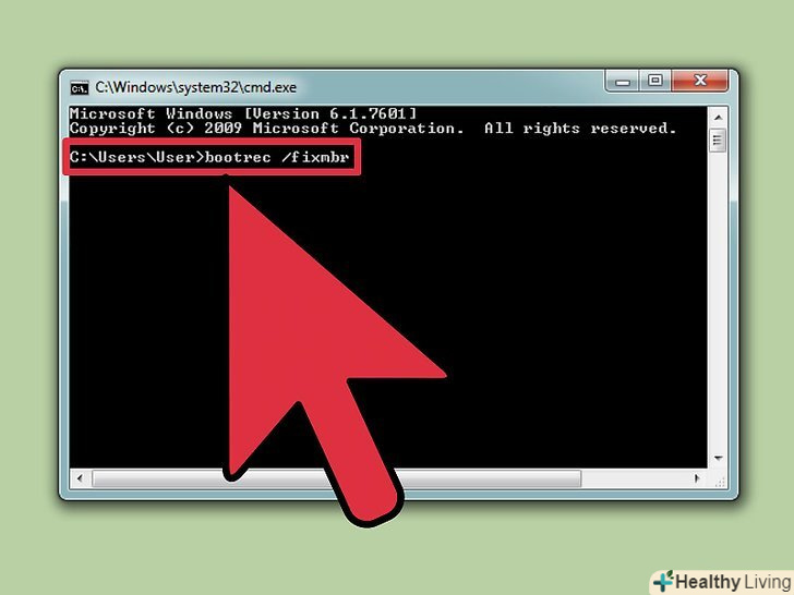 Введіть команду для виправлення завантажувача. введіть наведені нижче команди, натискаючи клавішу ↵ Enter після кожної. Зачекайте завершення процесу.- Bootrec /fixmbr