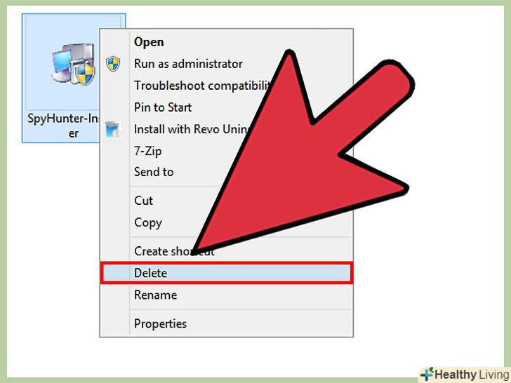Натисніть по кнопці.Видалити. Дотримуйтесь інструкцій для завершення даного процесу.- Закрийте опитування, не відповідаючи на нього.деякі користувачі стверджують, що, заповнивши анкету і натиснувши кнопку "Продовжити" насправді запускається перевстановлення SpyHunter. Уникнути цього можна закривши вікно опитування.