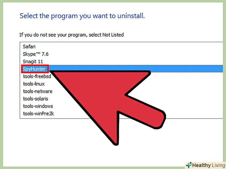 Виберіть "SpyHunter" зі списку програм.дотримуйтесь інструкцій, щоб видалити його з вашої системи. Якщо після цього SpyHunter не віддалиться, перейдіть до другої частини даної статті.