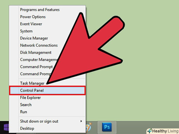 Відкрийте Панель керування.ви можете знайти її в меню "Пуск". Користувачі Windows 8 можуть натиснути поєднання клавіш ⊞ Win+X і вибрати в меню "Панель управління".
