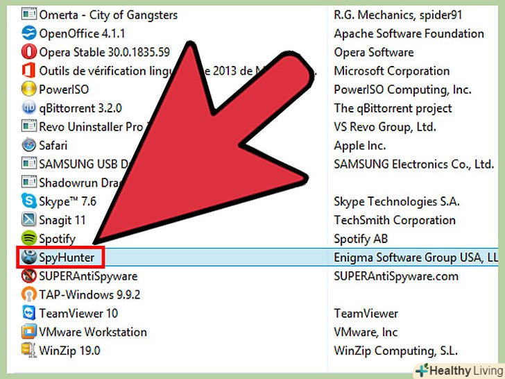 Прокрутіть вниз і виберіть "SpyHunter" зі списку встановлених програм.- Якщо SpyHunter там немає, то переходите відразу до шостого кроку даної частини.