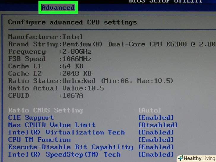 Перейдіть на сторінку " Advanced "(Додаткові) у верхній частині екрана. Для цього кілька разів натисніть клавішу →, а потім натисніть ↵ Enter. Відкриється сторінка з додатковими опціями BIOS.
