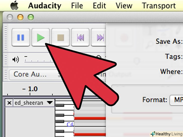 Перевірте ваш файл. натисніть зелену кнопку Play в Audacity, і послухайте вашу пісню, щоб перевірити якість запису.