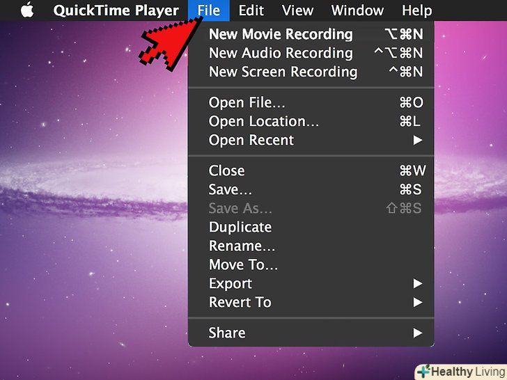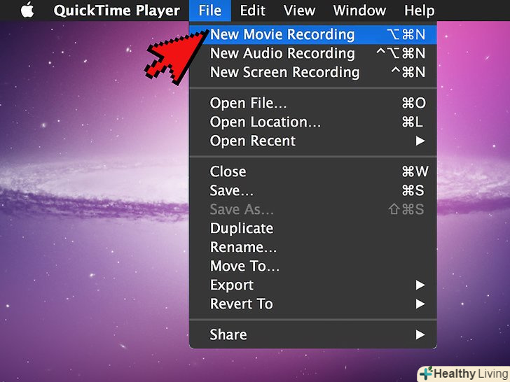 НатиснітьНовий відеозапис. ця опція знаходиться у верхній частині меню, що випадає «Файл". QuickTime Player перейде в режим запису.