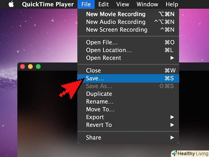 Збережіть відео . натисніть "Файл" gt; «Зберегти». Відкриється вікно "Зберегти". Введіть ім'я файлу в рядку "Експортувати як «і натисніть» Зберегти" в нижній частині вікна.- Тут також можна змінити розширення файлу з MOV на MP4; для цього виділіть розширення «mov» в кінці імені файлу, а замість нього введітьmp4.