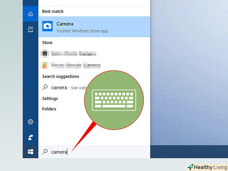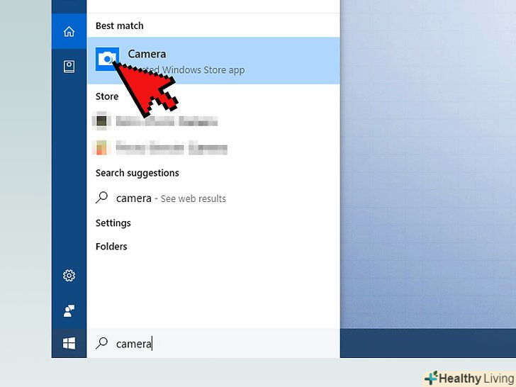 У рядку пошуку меню «Пуск» введітькамера.розпочнеться Пошук програми "Камера", яка управляє веб-камерою в Windows 10.[1]