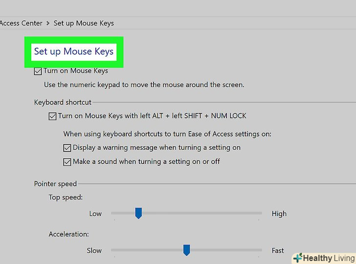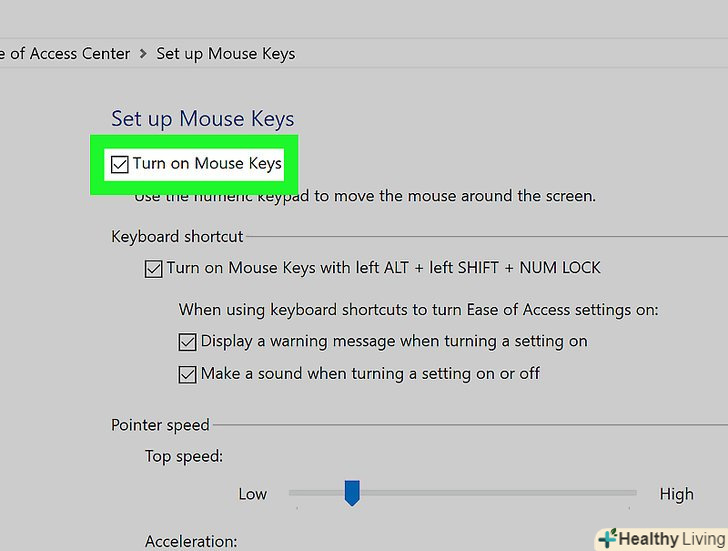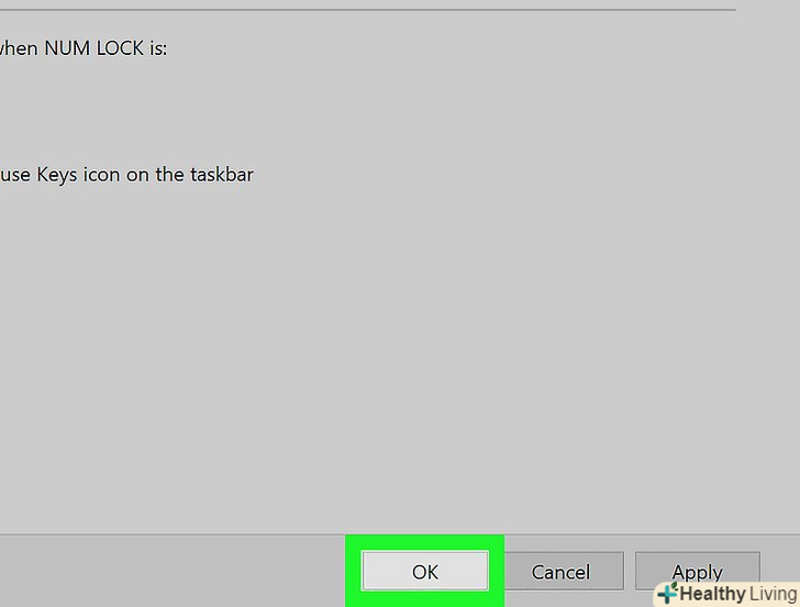 НатиснітьOK.ця кнопка знаходиться внизу вікна. Тепер покажчиком миші можна управляти з клавіатури.