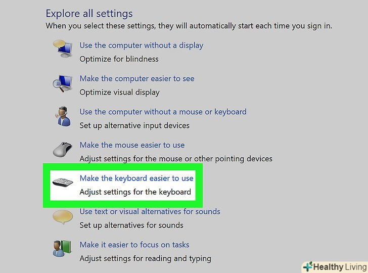 Відкрийте вікно "Параметри універсального доступу". так можна відключити функцію "Кнопки миші" за допомогою поєднання клавіш, яке ви використовували для включення цієї функції.- На жаль, ви не зможете ввести текст, якщо функція «Кнопки миші» активована.