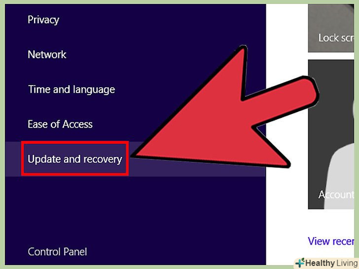- Натисніть "Змінити налаштування комп'ютера «і виберіть»Оновлення та відновлення".