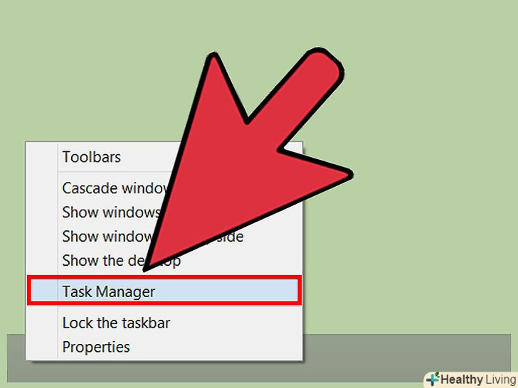 Закрийте непотрібні фонові програми.якщо у фоновому режимі працює надмірна кількість програм, швидкодія ноутбука сильно зменшується. Тому закрийте непотрібні фонові програми, щоб підвищити продуктивність ноутбука.- Клацніть правою кнопкою миші на панелі завдань і в меню виберіть «Диспетчер завдань».