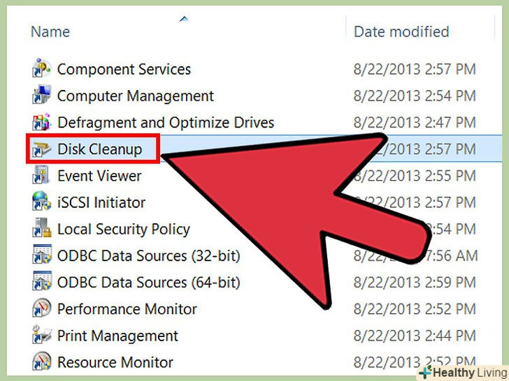Дефрагментуйте жорсткий диск.з часом компоненти файлів починають зберігатися на жорсткому диску в несуміжних кластерах, тобто системі доводиться звертатися до розрізнених кластерів, щоб знайти конкретний файл, а це зменшує загальну швидкодію ноутбука. У Windows дефрагментація диска виконується автоматично згідно заданому розкладом. Але ви можете запустити процес дефрагментації вручну.[12]- Натисніть "Пуск «і в рядку пошуку введіть» дефрагментація і оптимізація диска" (без лапок). У результатах пошуку клацніть по відповідній утиліті.
