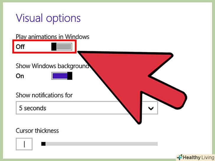 Вимкніть візуальні ефекти.у Windows 10 вбудовано велику кількість анімованих ефектів, які включені за замовчуванням. вимкніть анімовані ефекти, щоб збільшити продуктивність ноутбука.- Натисніть⊞ Win+