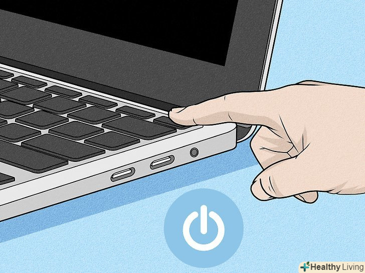 Натисніть кнопку включення.можливо, вам доведеться утримувати її протягом деякого часу. Як тільки на екрані щось з'явиться, відпустіть кнопку включення. Як правило, при успішному включенні ноутбука лунає сигнал.- Щоб включити деякі моделі ноутбуків, потрібно натиснути будь-яку клавішу.