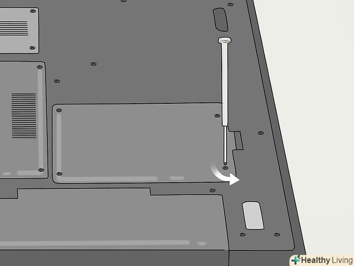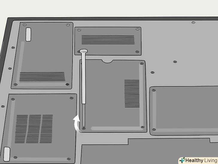 Зніміть кришку, що закриває відсік для жорсткого диска.ця панель закриває відсік 2,5, який буде містити ваш жорсткий диск. Розташування залежить від корпусу, але відсік зазвичай розташований в напрямку передньої частини ноутбука.
