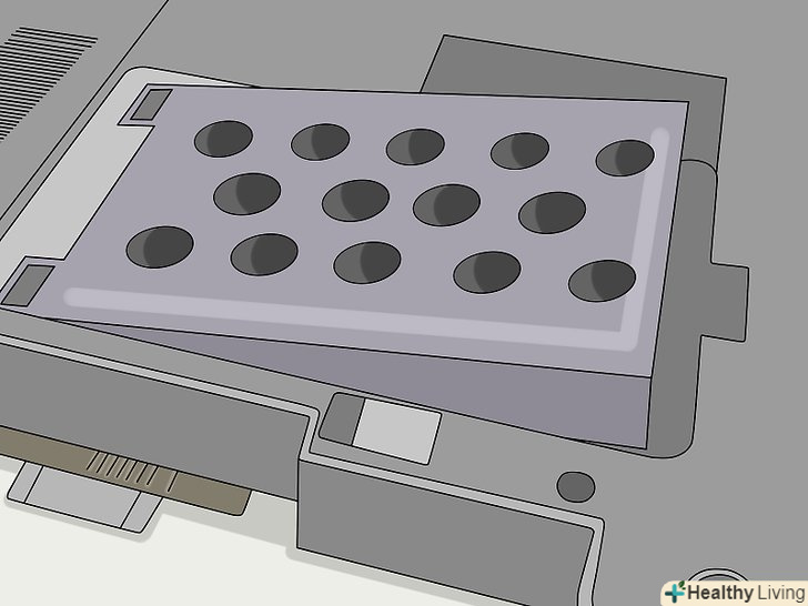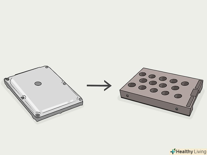 Встановіть жорсткий диск в кронштейн.більшість ноутбуків вимагає встановлювати жорсткий диск на кронштейн, який відповідає стандартному жорсткому диску. Використовуйте чотири гвинти, щоб закріпити жорсткий диск у кронштейні. Вкрутіть гвинти в отвори для них, переконайтеся, що ви встановили жорсткий диск в правильному напрямку.
