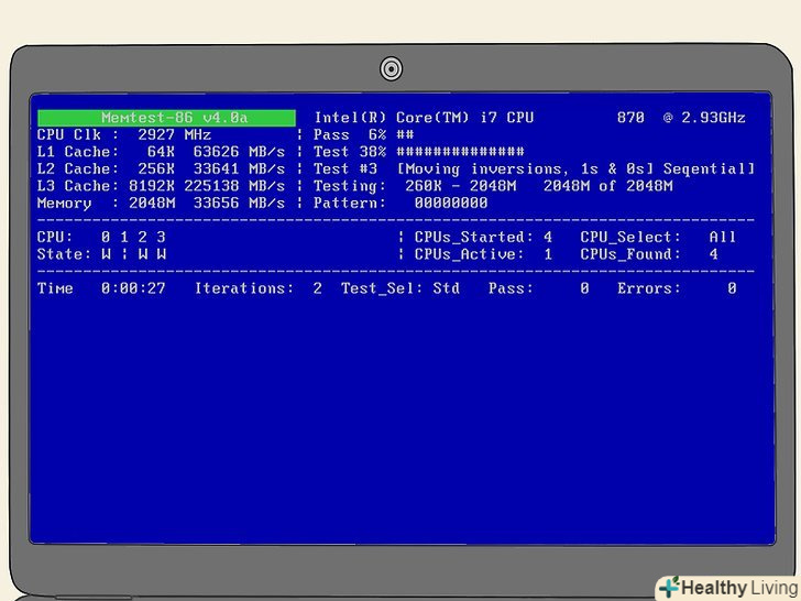 Перевірте пам'ять. перед тим, як встановити операційну систему, запустіть Memtest86 + для того, щоб переконатися, що пам'ять працює правильно, і що ваш комп'ютер працює в цілому. Memtest86 + можна завантажити безкоштовно в Інтернеті, і його можна завантажити з компакт-диска або USB-накопичувача.- Ви також можете перевірити, чи розпізнається що встановлена пам'ять, за допомогоюBIOS. Знайдіть розділ Hardware Monitor, щоб побачити, чи з'являється ваша пам'ять.