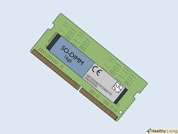 Купуйте пам'ять .для вашого ноутбука потрібен спеціальний тип пам'яті. Цей тип пам'яті відрізняється від пам'яті для настільного комп'ютера. Шукайте so-dimm пам'ять, яка буде працювати з материнською платою у вашому корпусі. Більш швидка пам'ять дасть кращу продуктивність, але може привести до зниження терміну служби батарей.- Постарайтеся купити пам'ять розміром від 8 до 16 Гб для оптимальної повсякденної роботи.
