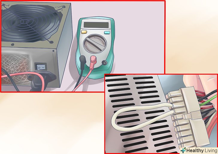 Перевірте блок живлення за допомогою приладу для перевірки електроживлення.такий прилад можна купити в магазині техніки. Знайдіть коннектор 20/24 на блоці живлення. Це найбільший кабель, підключений до блоку живлення.- Підключіть блок живлення до коннектора 20/24.