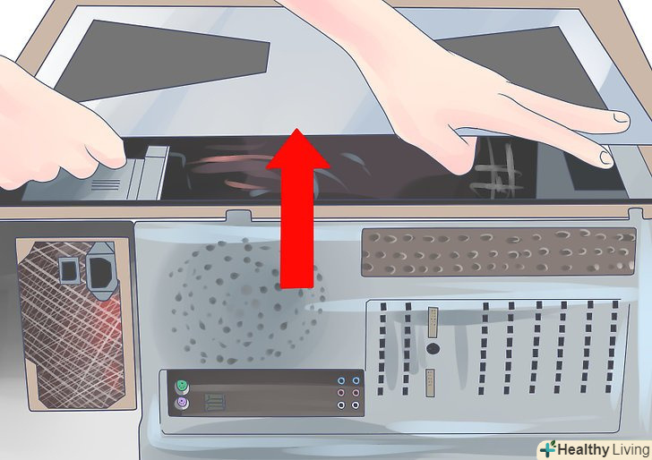 Вимкніть комп'ютер. Вимкніть комп'ютер від мережі. Вимкніть живлення, переключивши перемикач ззаду на блоці живлення. Відкрийте кришку комп'ютера і вимкніть всі кабелі, які підключені до блоку живлення.