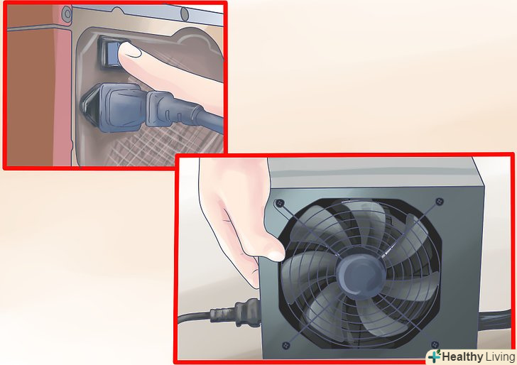 Вимкніть комп'ютер.коли комп'ютер вимкнеться, вимкніть перемикач, який знаходиться на задній стінці блоку живлення комп'ютера. Вимкніть його з мережі.