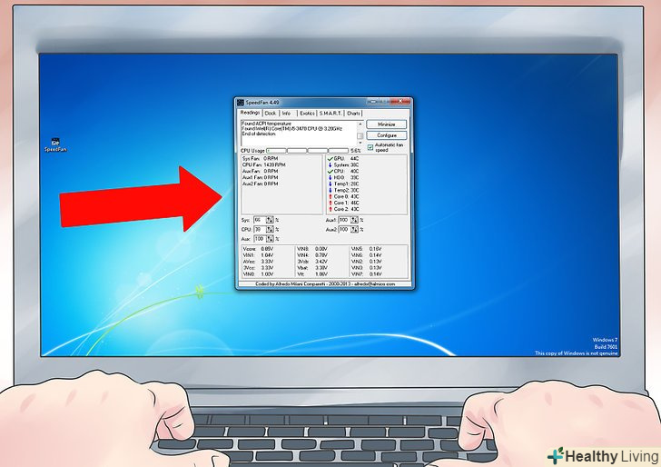 Перевірте, чи нормально працює блок живлення, чи постачає він напругу іншим частинам комп'ютера.для цього вам знадобиться спеціальне програмне забезпечення. SpeedFan-одна з кращих безкоштовних програм, придатних для цього. Запустіть її і перевірте температуру і напругу робочих частин комп'ютера.- Якщо ваш комп'ютер не працює і не включається, приступайте відразу до наступного кроку.