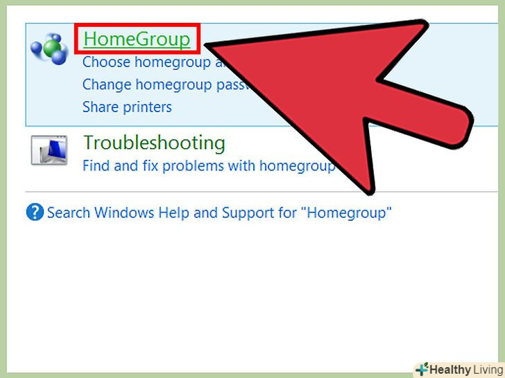 У рядку пошуку (у правому верхньому куті вікна) введіть «Домашня група».потім клацніть по "Домашня група".