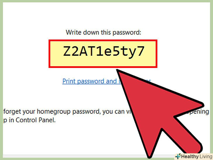 Запишіть пароль, який відобразиться в наступному вікні.цей пароль вводиться іншими користувачами, щоб підключитися до домашньої групи. Потім натисніть "Готово".