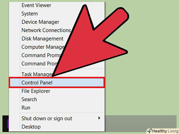- У Windows 7/Vista / XP Натисніть клавішу Win, яка знаходиться зліва від клавіші Alt. Введіть "панель управління", а потім клацніть по значку, який відобразиться під текстовим полем. Або відкрийте меню "Пуск", клацнувши по значку в нижньому лівому кутку екрану.
