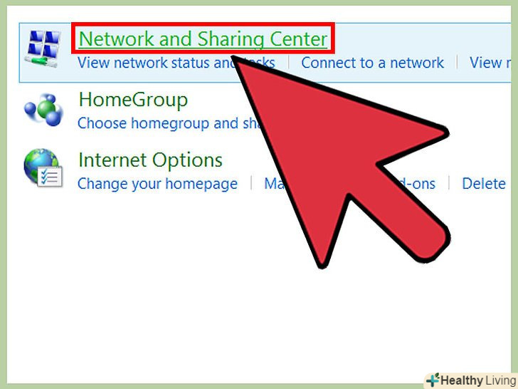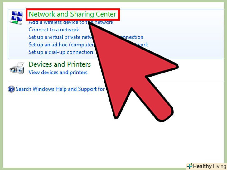 У Windows 7/Vista / XP користувачі у вікні панелі інструментів клацніть по «Центр управління мережами і загальним доступом».або знайдіть цю категорію, ввівши її назву в рядку пошуку (у верхньому правому куті вікна панелі управління).