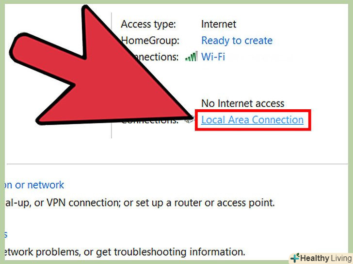 У вікні «Центр управління мережами і загальним доступом» клацніть по "підключення по локальній мережі"; у вікні «стан – підключення по локальній мережі» натисніть "Властивості".