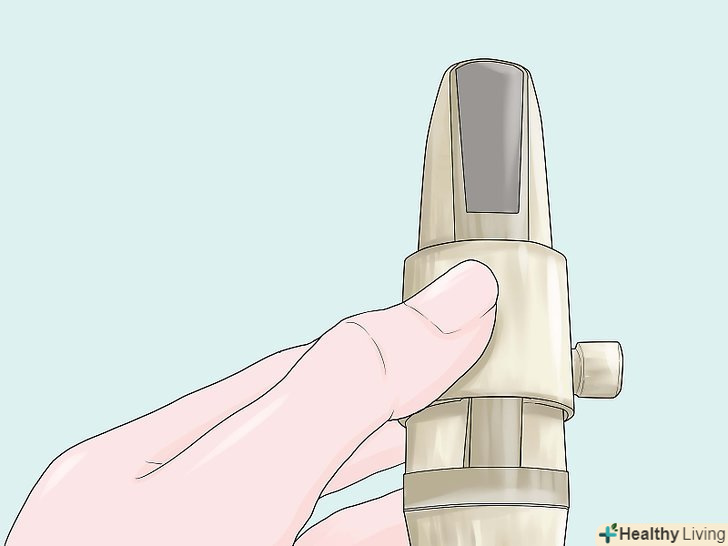 У вас повинна бути лігатура.лігатура може бути зроблена з металу або шкіри. Металеві сріблястого кольору і зазвичай укріплені двома гвинтами. Шкіряні коштують дорожче, як правило, чорні і зазвичай в них тільки один гвинт. Найчастіше вони продаються разом з інструментом, але можна купити і окремо. Лігатури призначені для правшів; гвинт, який ви крутите, буде у вас справа.- Металеві лігатури дешевше і прекрасно працюють, але мають тенденцію "обкушувати" тростину – створювати поглиблення в нижній частині, біля кріплення, що ускладнює зміну розташування тростини після гри.