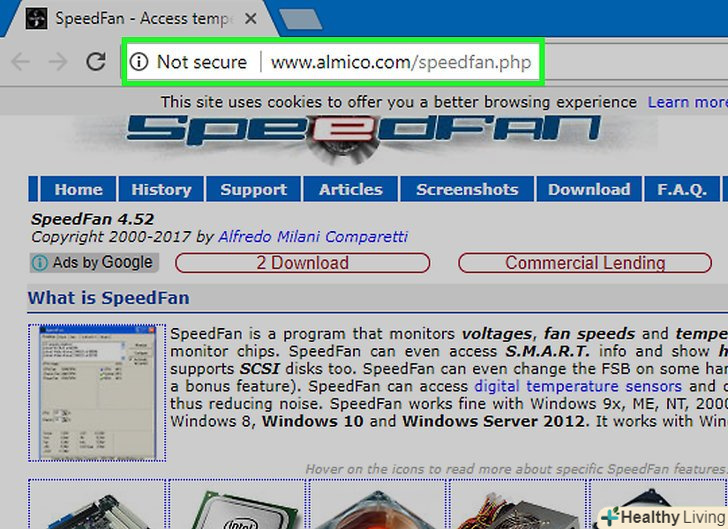Встановіть відповідну програму.деякі материнські плати поставляються в комплекті з програмним забезпеченням для апаратного моніторингу. Також є ряд безкоштовних і платних програм для моніторингу температури (вони доступні в Інтернеті). Однією з найпопулярніших є SpeedFan, тому що вона безкоштовна і споживає мало системних ресурсів. Встановіть відповідну програму.деякі материнські плати поставляються в комплекті з програмним забезпеченням для апаратного моніторингу. Також є ряд безкоштовних і платних програм для моніторингу температури (вони доступні в Інтернеті). Однією з найпопулярніших є SpeedFan, тому що вона безкоштовна і споживає мало системних ресурсів.- SpeedFan має безліч додаткових функцій, які потенційно можуть пошкодити систему при неправильному використанні. Використовуйте програму тільки для моніторингу температури компонентів, якщо не знаєте, як працюють інші функції.