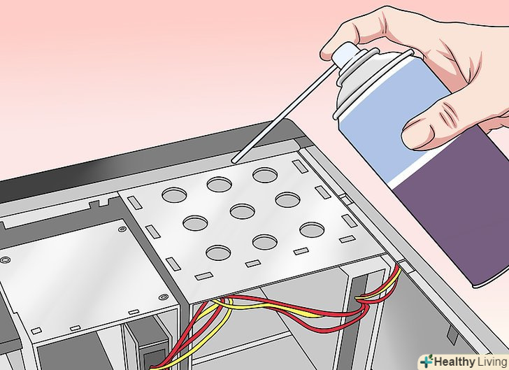 Покращуйте охолодження комп'ютера. Є безліч способів поліпшити охолодження комп'ютера. Найпростіший метод-видалення пилу всередині корпусу за допомогою стисненого повітря. Пил забиває кулери і радіатори, що погіршує їх тепловідвідні властивості. Покращуйте охолодження комп'ютера. Є безліч способів поліпшити охолодження комп'ютера. Найпростіший метод-видалення пилу всередині корпусу за допомогою стисненого повітря. Пил забиває кулери і радіатори, що погіршує їх тепловідвідні властивості.- Якщо ви використовуєте настільний комп'ютер, то можете встановити додаткові кулери.