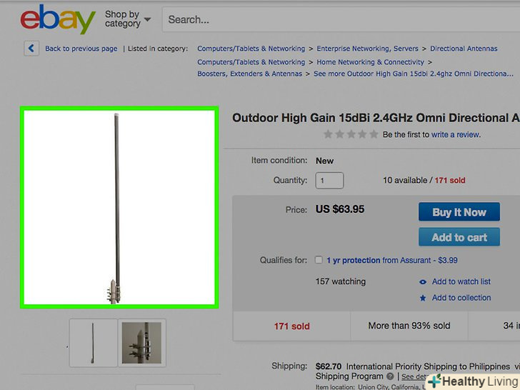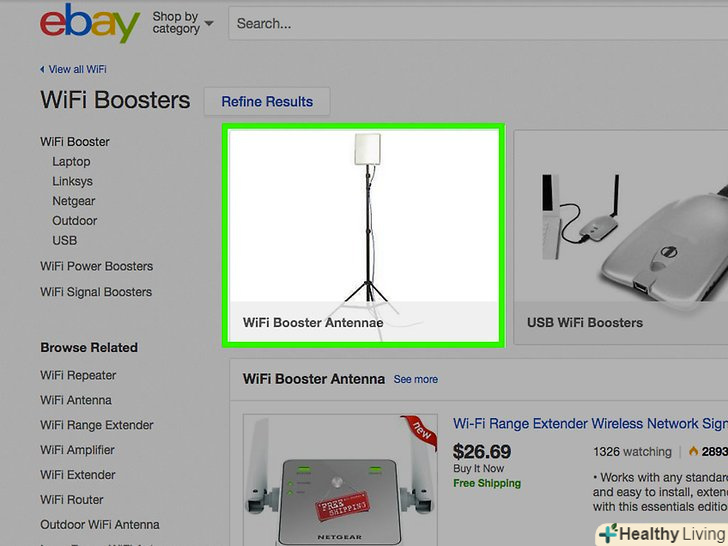 Встановіть підсилювач бездротового сигналу.Підключіть підсилювач бездротового сигналу безпосередньо до Вашого роутера. Підсилювач куди більш доступний в плані вартості, так як тільки підсилює потужність існуючого сигналу, але не радіус покриття.- Використовуйте двонаправлений підсилювач для підвищення швидкості як завантаження (download), так і завантаження (upload) даних.