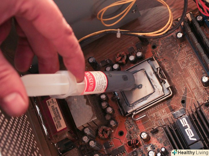 Нанесіть тонкий шар термопасти на процесор.не зловживайте кількістю термопасти, так як це призведе до перегріву процесора.