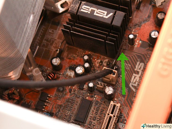 Вимкніть живлення кулера від материнської плати.для цього візьміться за пластиковий коннектор і потягніть його вгору (не тягніть за дроти).