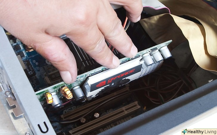 - Вибирайте відеокарту, відповідну типу роз'єму на вашій материнській платі. Перед покупкою відеокарти визначте тип роз'єму (PCI, AGP, PCI Express або їх комбінація) на материнській платі.
