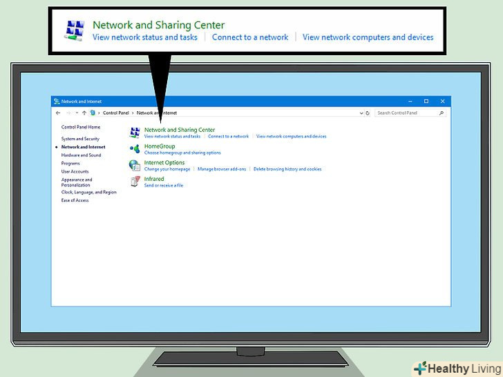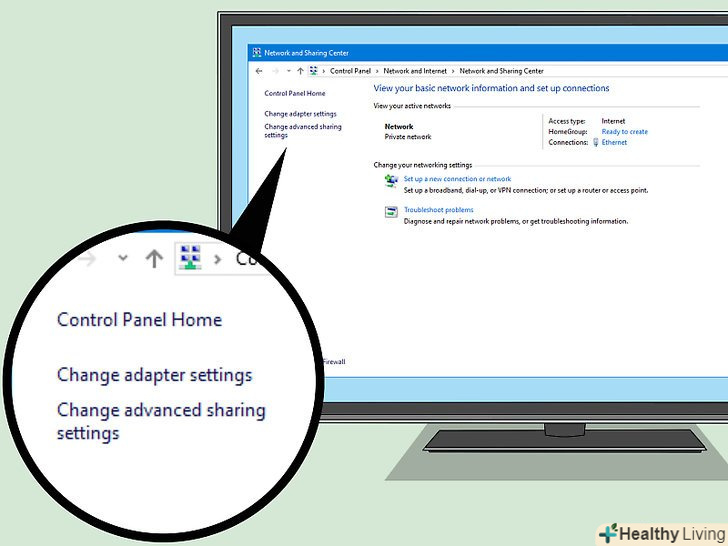 НатиснітьЦентр управління мережами і загальним доступом. Ви знайдете цю опцію посередині сторінки.