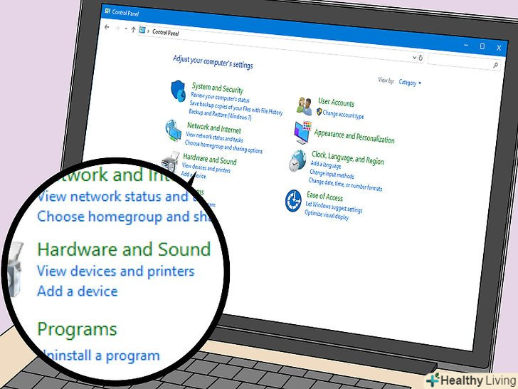 НатиснітьПерегляд пристроїв і принтерів. це заголовок у нижній частині сторінки.- Якщо в меню «Перегляд» (у верхній правій частині вікна) обрана опція «Дрібні значки» або «великі значки», натисніть «пристрої та принтери».