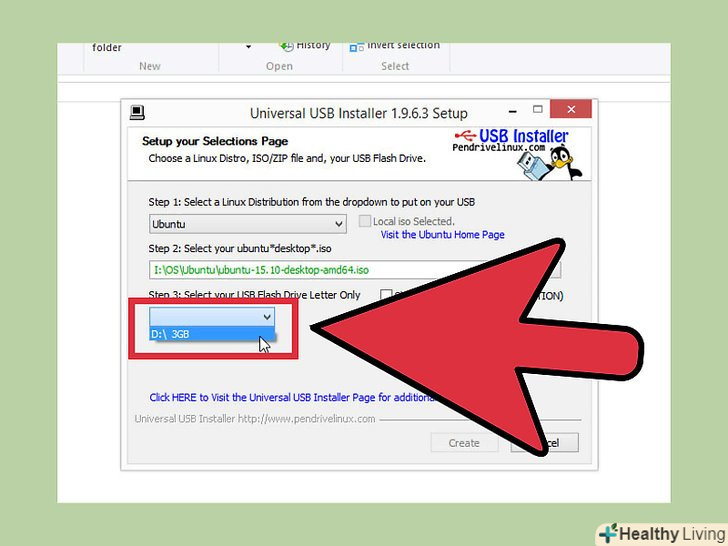 У нижній частині вікна програми виберіть відповідний USB-накопичувач.якщо до комп'ютера підключені відразу кілька USB-накопичувачів, виберіть той, на який буде записаний установник Ubuntu.