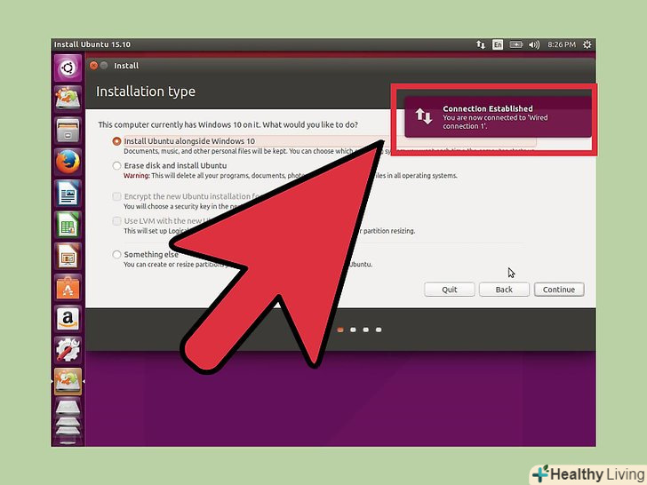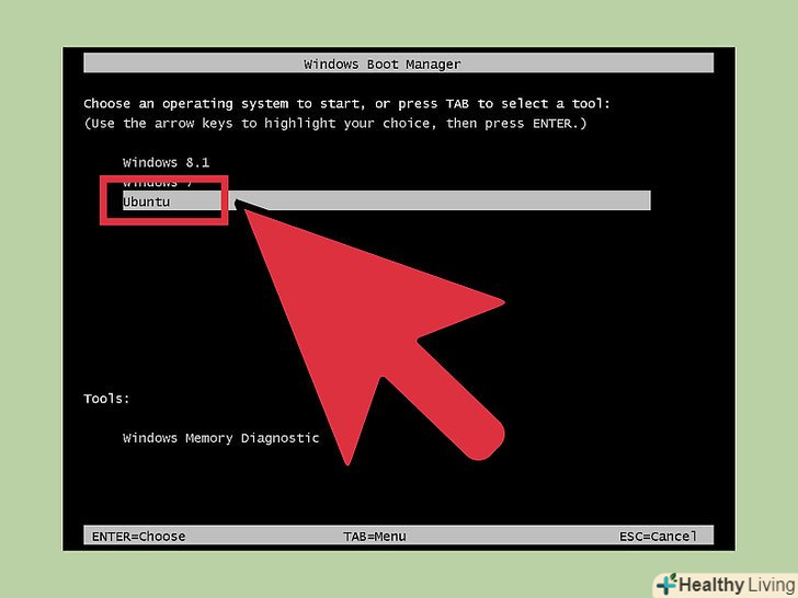 Якщо Ubuntu встановлена в якості другої системи, при включенні комп'ютера виберіть опцію "Ubuntu".по завершенні установки системи комп'ютер перезавантажиться. Якщо Ubuntu встановлена в якості другої системи, на екрані відобразиться завантажувальне меню, в якому можна вибрати відповідну операційну систему. У цьому меню натисніть " Ubuntu»; система буде автоматично завантажена або відкриється екран входу в систему (в залежності від того, як налаштований вхід в Ubuntu).[2]