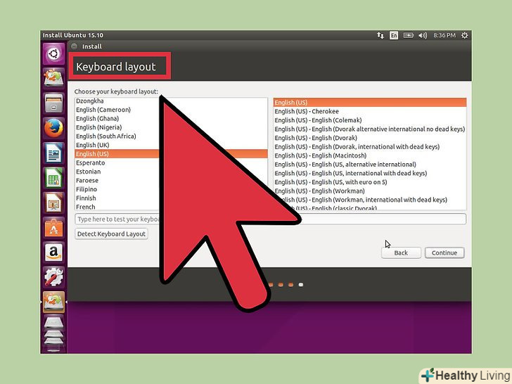 Виберіть країну і розкладку клавіатури.якщо комп'ютер підключений до Інтернету, інсталятор Ubuntu автоматично визначить ваше місце розташування. Якщо ви не знаєте, яку розкладку клавіатури вибрати, натисніть кнопку "визначити розкладку клавіатури".