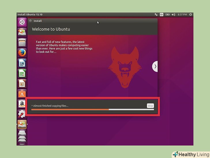 Дочекайтеся завершення установки Ubuntu.після завантаження Ubuntu установка системи продовжитися (на це піде близько 15 хвилин). По завершенні процесу установки комп'ютер ще раз перезавантажиться.