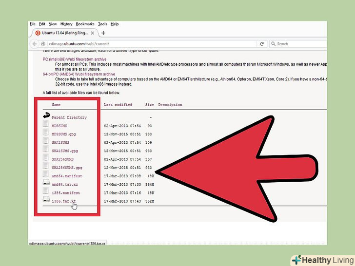 Завантажте файли Wubi. це установник Ubuntu, за допомогою якого цю систему можна інсталювати з-під Windows (як просту програму). Wubi можна завантажити на сайті cdimage.ubuntu.com/wubi/current/.- Якщо ви не знаєте розрядність Windows, скачайте файл i386.tar.xz. Якщо ж у вас 64-розрядна система, скачайте файл amd64.tar.xz.