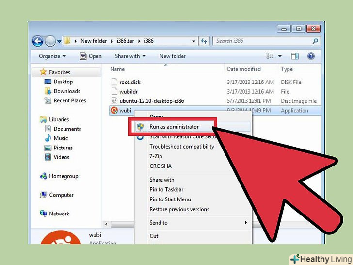 Зрозумійте процес. компанія Canonical (займається розробкою і підтримкою Ubuntu) більше не випускає нові версії установника Ubuntu, за допомогою якого ця система встановлюється з-під Windows. Але можна використовувати старі версії інсталятора, які підтримуються Windows XP/Vista / 7 (інсталятор Ubuntu не працює в Windows 8/10). Майте на увазі, що використання інсталятора Ubuntu може призвести до проблем, яких можна уникнути при установці системи з USB-накопичувача. Тому не користуйтеся цим методом без крайньої необхідності.- Інсталятор Ubuntu можна використовувати лише для встановлення Ubuntu як другої системи. Щоб встановити Ubuntu замість Windows, скористайтеся методом установки з USB-накопичувача (читайте перший розділ).