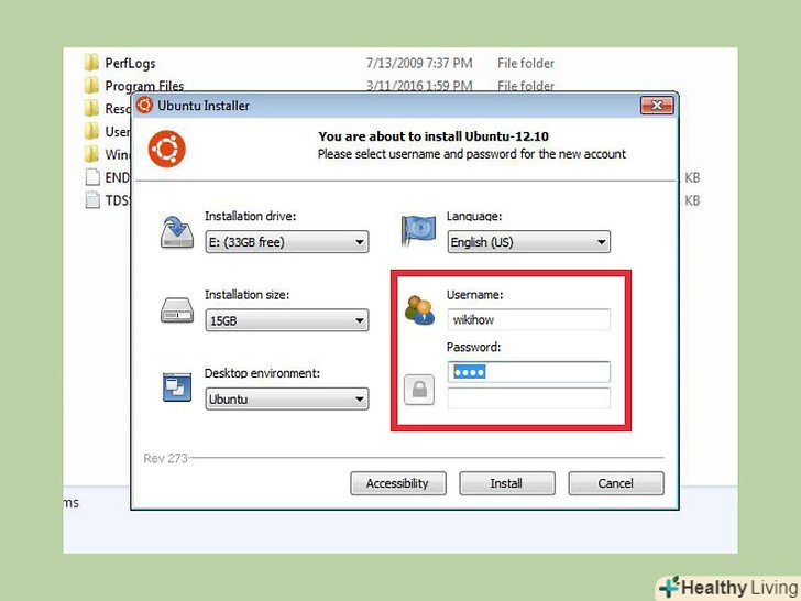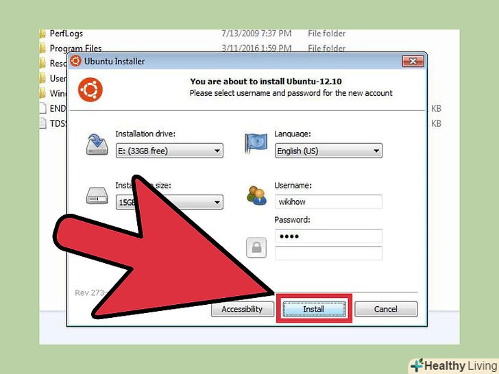 Запустіть Wubi.змініть кілька параметрів установки, які знаходяться в одному меню.
