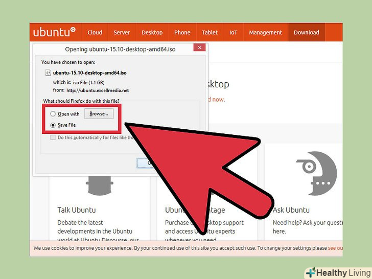 Дочекайтеся завершення скачування системи.завантажиться образ диска (ISO-файл) Ubuntu, розмір якого трохи більше 1 ГБ. Якщо підключення до Інтернету повільне, на скачування піде чимало часу.